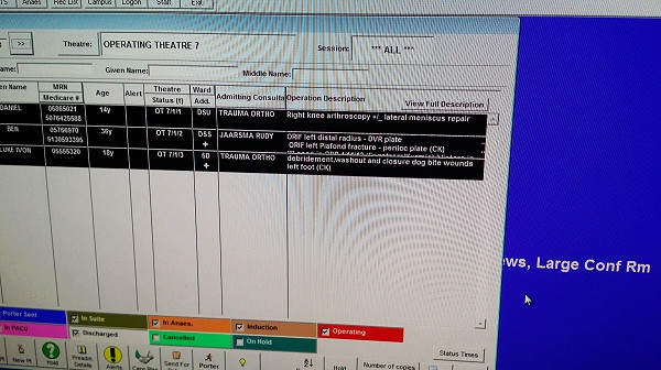 在门诊和病房给我最大的冲击是他们的病例资料如此齐全,医院负责保管病历(包括门诊和住院病历),所有的数据都可查询到,有一天我们的consultant就在一个病人病历上发现了自己在1999年“稚气未脱”的签名。而且一查病历号(似乎也是住院号),以前所有的影像数据都会出现在里面,哪怕是10年前。起码南澳都是采用同一系统,想想我们这边的地方特色,就不难明白为什么中国的随访总是这么困难了。