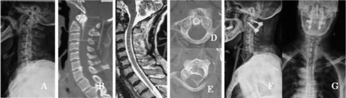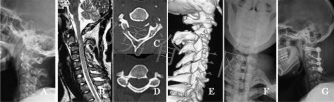 患者接受后路T6-T7全椎板切除减压sino固定融合术(Figure F,G)。