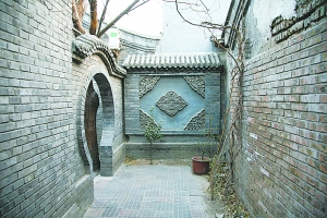 第一眼的印象永远难忘。离开了大院儿的楼房,三轮车穿过胡同,到了一个高台阶的瓦房木门口,经过昏暗的门廊,阳光下迎头是墙上雕着砖花的影壁,看似好像无路,左手却出现一道月亮门,碧绿的漆,圆圆的一分两扇,很是新奇。