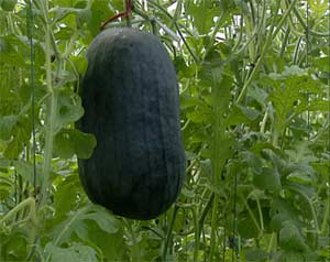北京市面上最常见的西瓜都是篮球一样圆溜溜的,浅绿色的瓜皮上面是深绿的花纹。西瓜瓤是红粉色,很沙很甜。如果偶尔见到全绿皮的椭圆形的西瓜,大 家还像见到怪物似的很怀疑是否好吃。其实,在二、三十年前,完全不是如此。