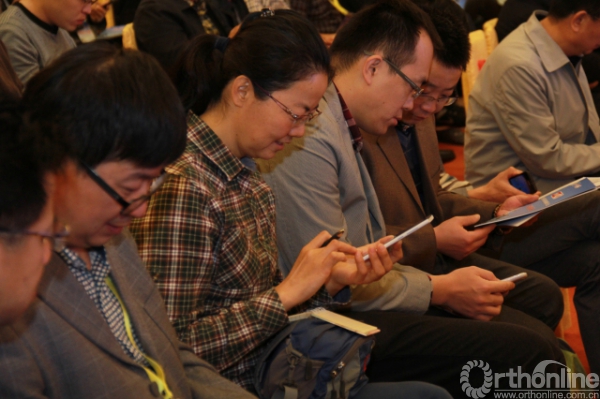 现场百位与会人员通过骨科在线微信公众平台进行网络微信互动,提出问题、发表观点,与专家实时沟通交流,气氛热烈。