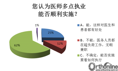 调查结果显示,参与调查的医生中,有86%认为“医师多点执业” 政策好,并对这一政策表示支持;54.4%的医生认为,这一政策对医生影响不大,并对此政策持观望态度。从调查中,我们不难看出,医师多点执业作为医改新政,已受到广大医生的关注和认可。这主要是因为: