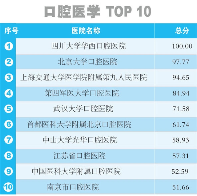 2014年度中国医院科技影响力排行榜(口腔医学)