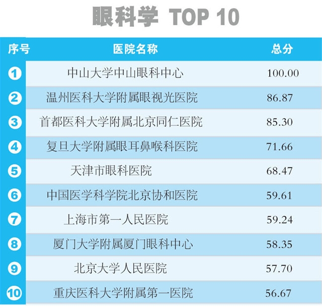 2014年度中国医院科技影响力排行榜(耳鼻咽喉科学)
