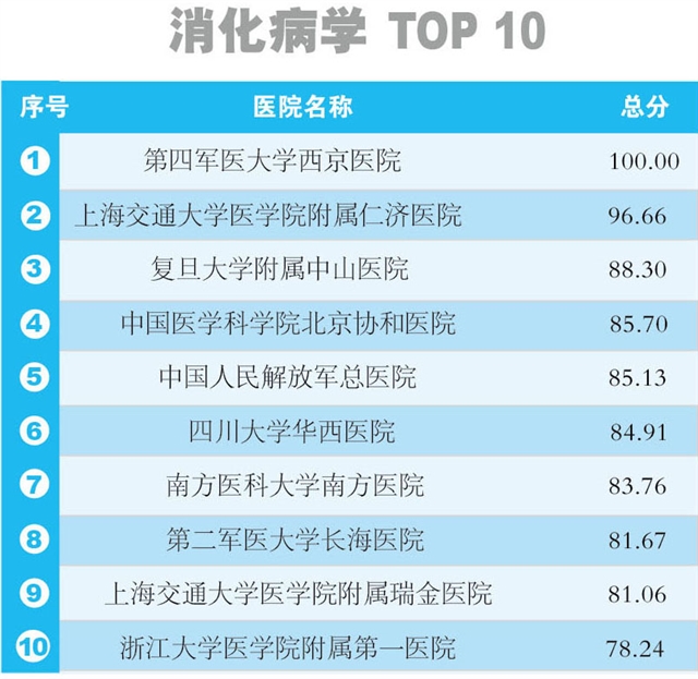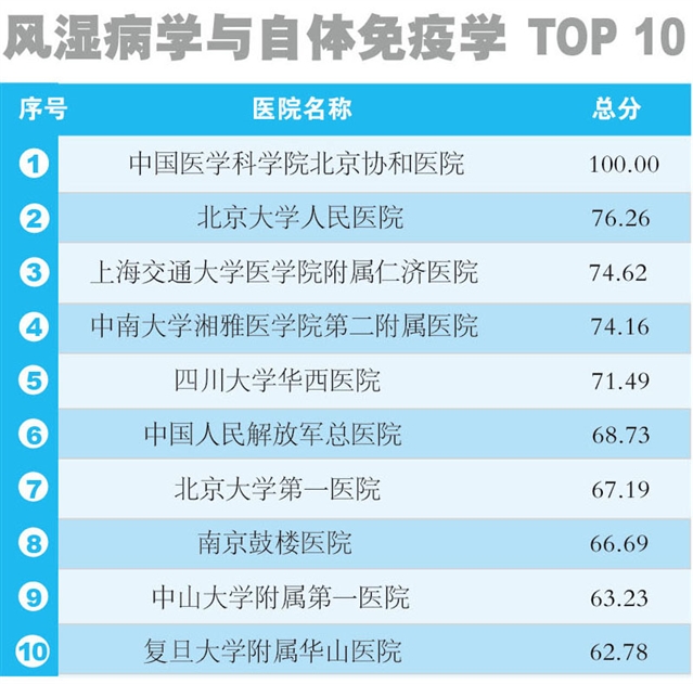 2014年度中国医院科技影响力排行榜(风湿病学与自体免疫学)