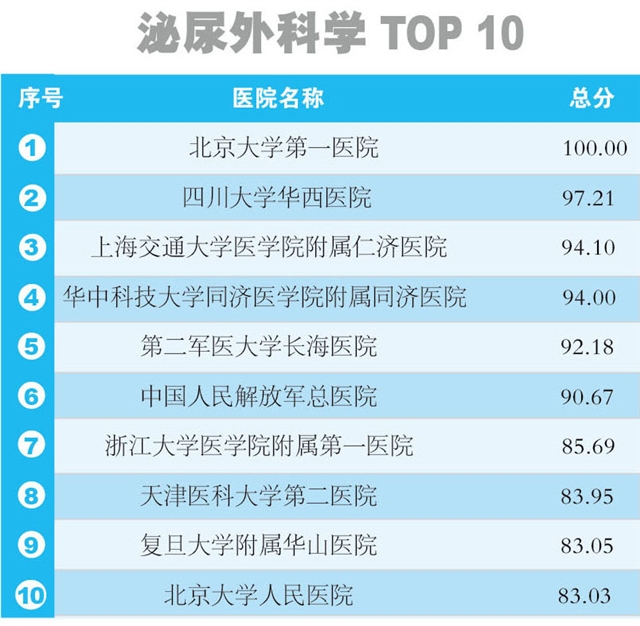 2014年度中国医院科技影响力排行榜(泌尿外科学)