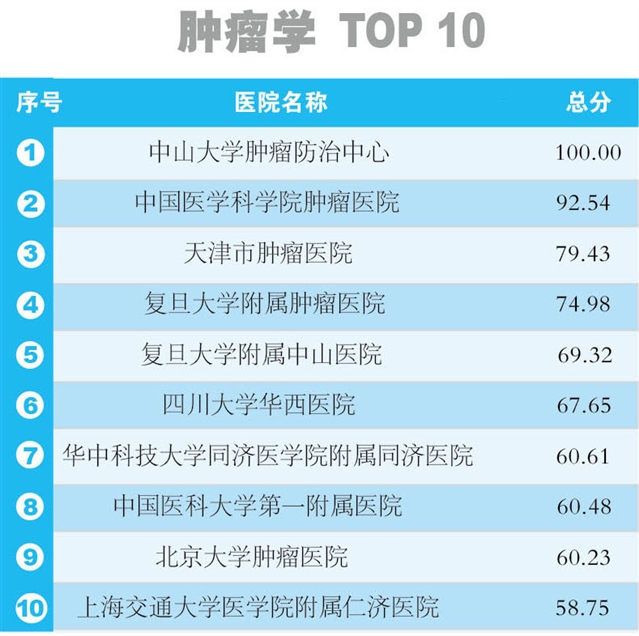 2014年度中国医院科技影响力排行榜(肿瘤学)