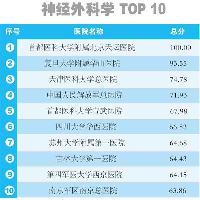 2014年度中国医院科技影响力排行榜(神经外科学)