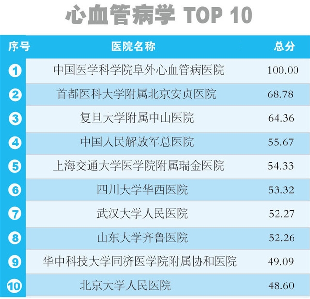 2014年度中国医院科技影响力排行榜(心血管病学)