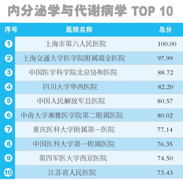 2014年度中国医院科技影响力排行榜(内分泌学与代谢病学)