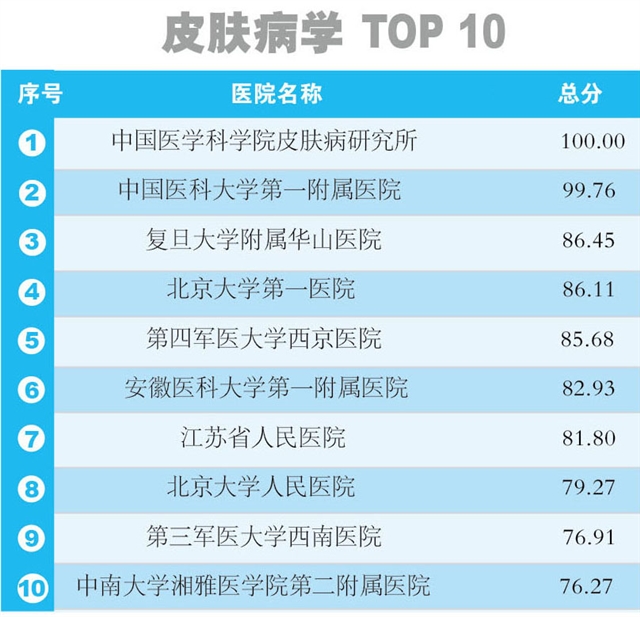 2014年度中国医院科技影响力排行榜(皮肤病学)