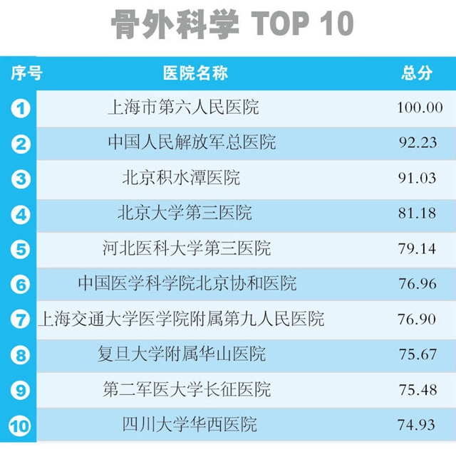2014年度中国医院科技影响力排行榜(骨外科学)