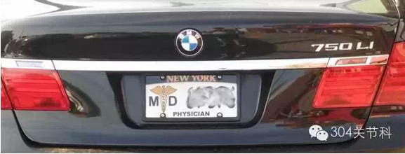 图为美国医生专用车牌(MD是医学博士简称)