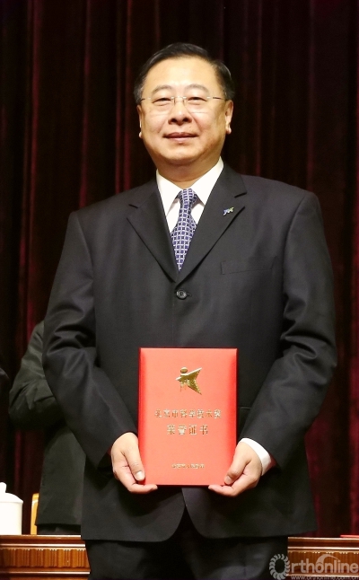 伴随着欢快的乐曲声,出席大会的主要领导为荣获北京市科学技术奖的获奖者颁奖。当田伟院长走上台时,北京市委常委、北京市常务副市长李士祥高兴地为我院田伟院长颁奖。