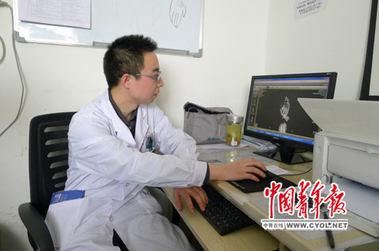 田恒在查看患者杨颖的医学光片。记者 王培莲/摄
