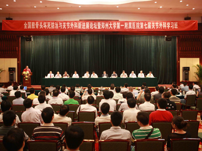 2011年7月8~10日,由郑州大学第一附属医院主办的国家级继续医学教育项目-全国“股骨头坏死防治与髋关节外科新进展”暨郑州大学第一附属医院第七届关节外科学习班在郑州市召开。郑州大学副校长、郑州大学第一附属医院院长阚全程教授,郑州大学第一附属医院副院长张水军教授,郑州大学第一附属医院副院长文建国教授,河南省医学会副会长兼秘书长孙威等领导参加了开幕式,应邀到会并做特别讲演的国内著名专家有王继芳、李子荣、王坤正、裴福兴、翁习生、杨述华、曲铁兵、宋咏堂教授等。