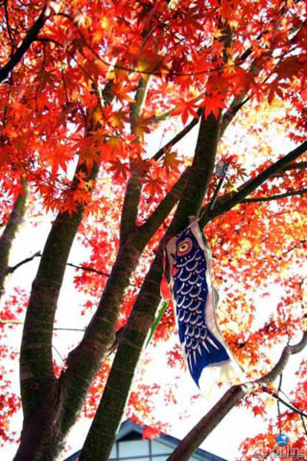 “前面还有!”又一声惊叹,抬眼过去,前面的森林深处竟是一处一处的枫火在闪烁,没有香山那样的大片的连接,可是每一颗都像镶嵌在绿色丝绒上的红宝石,吸引我们走向不尽的深处。