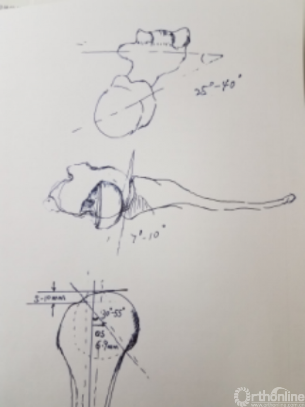 3.柄部没有骨水泥,利于引流,头部较原有假体头部偏大,减少挛缩,占位关节腔,颈干角及后倾维持