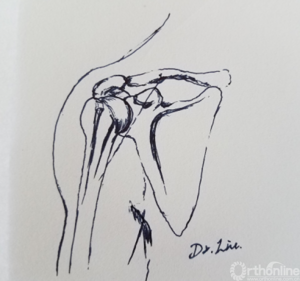 注意事项: 肱骨头内移至喙突处,位于后内侧下方已有骨桥连接