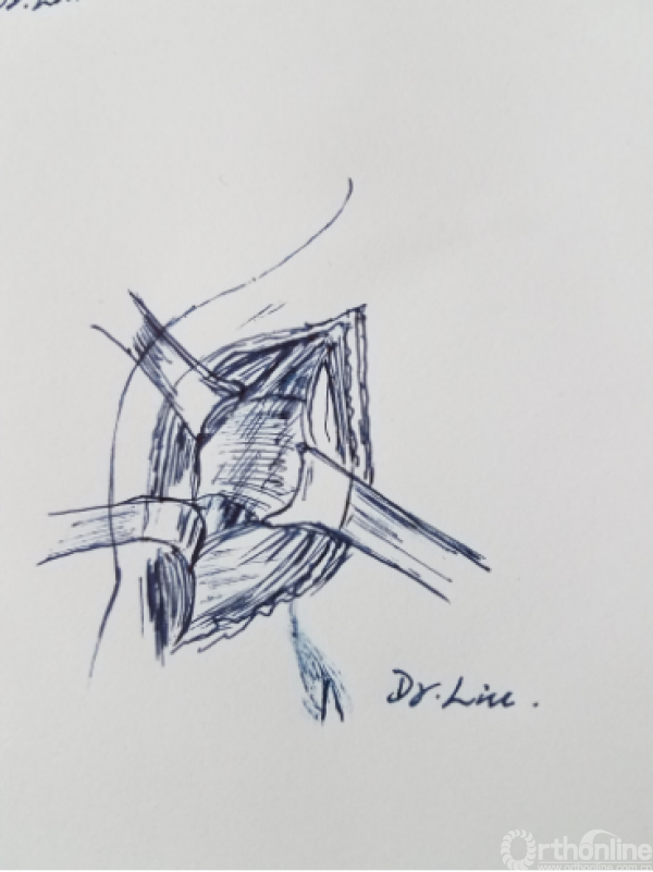 因患者拍片资料丢失,仅能根据现存原手术记录及患者口述进行绘图重建