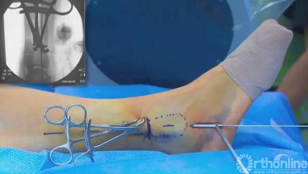 复位:用两个巾钳配合足的旋转与牵引进行复位