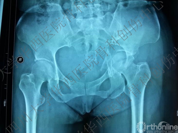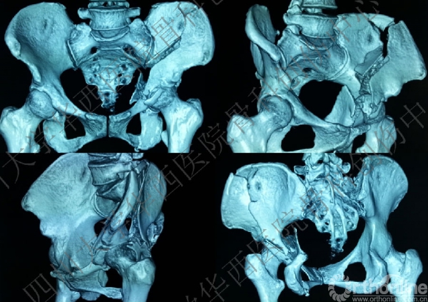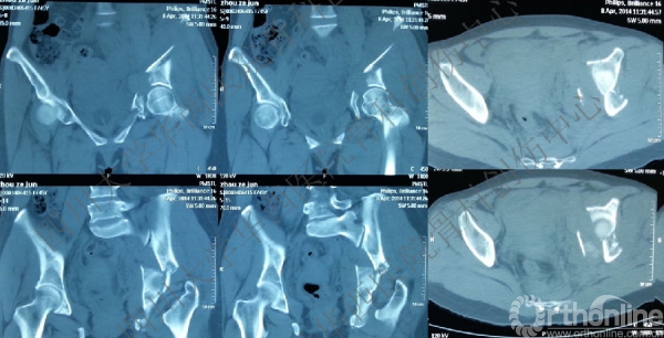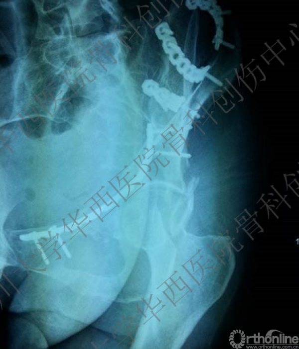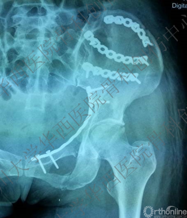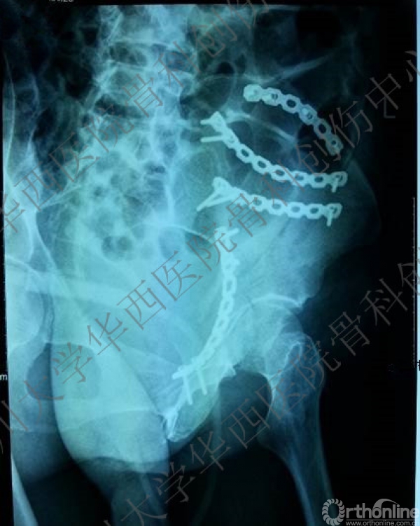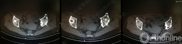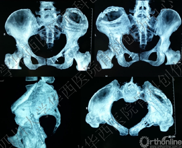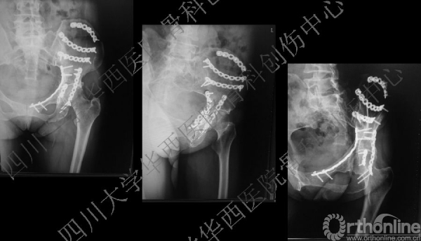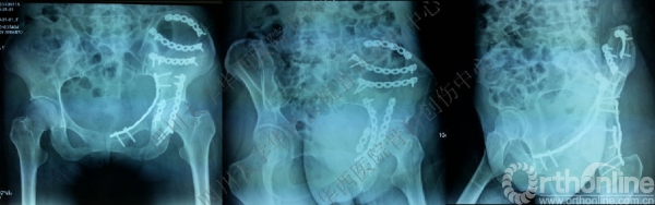 这是术后的X线片,患侧正位、髂骨斜位、闭孔斜位。