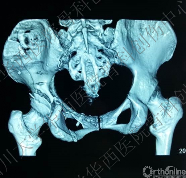 入院后行左股骨髁上牵引,积极术前准备,做CT,证实双柱骨折的诊断。