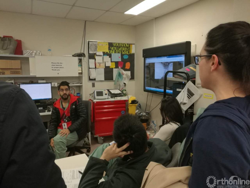 天没亮,住院医生的学习就开始了。每天凌晨六点,病区的医生办公室就热闹起来了,有的医生斜靠着柜子,有的则端着咖啡和早点,气氛比较轻松。大家看着投影上的影像学资料,回顾昨天的手术和讨论今天将要进行的手术病例。
