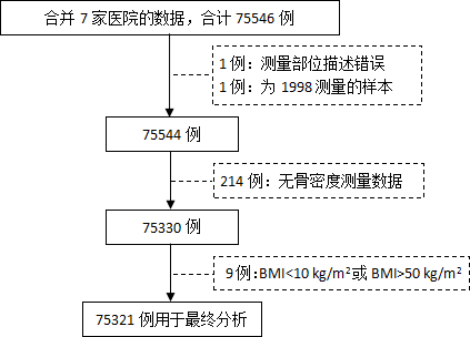 数据质量控制:各中心DXA数据导出完成后,上传到数据中心,按照统一方法进行清理、核查和纠正。