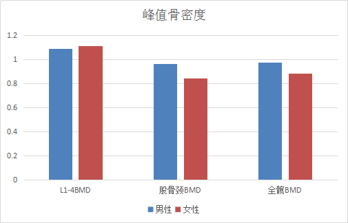 (2)年龄:随着年龄增长,各部位骨密度呈下降趋势,但男性骨密度下降幅度较小,女性50岁后骨密度下降明显。