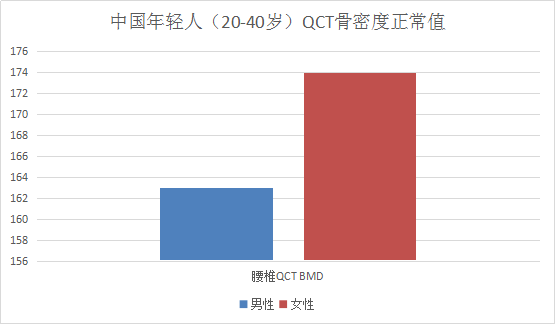 图1 中国年轻人(20-40岁)QCT腰椎骨密度正常值