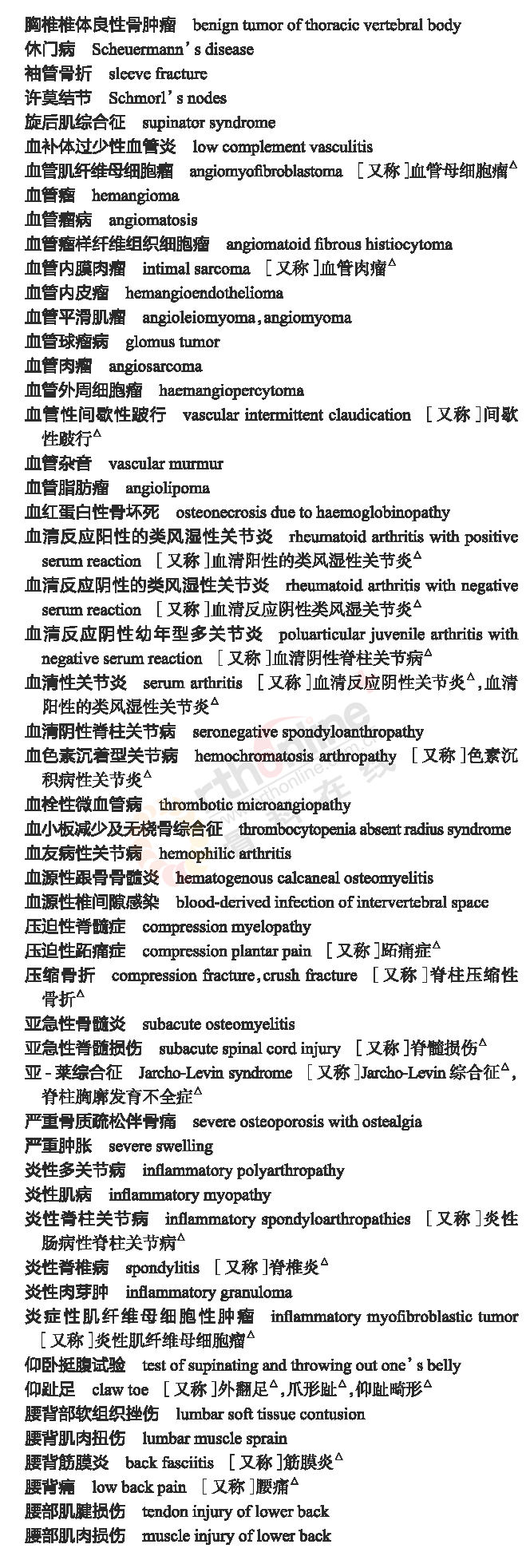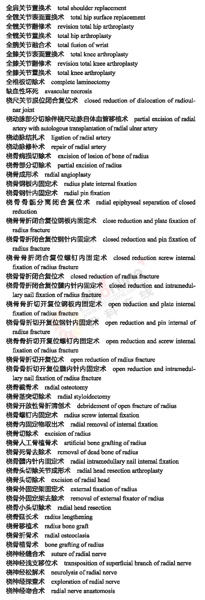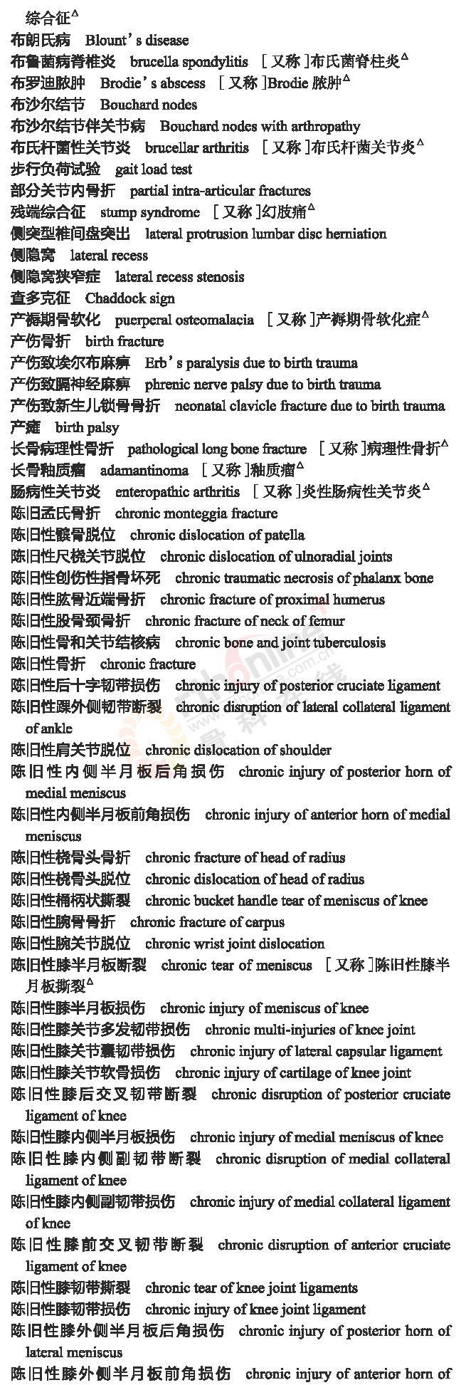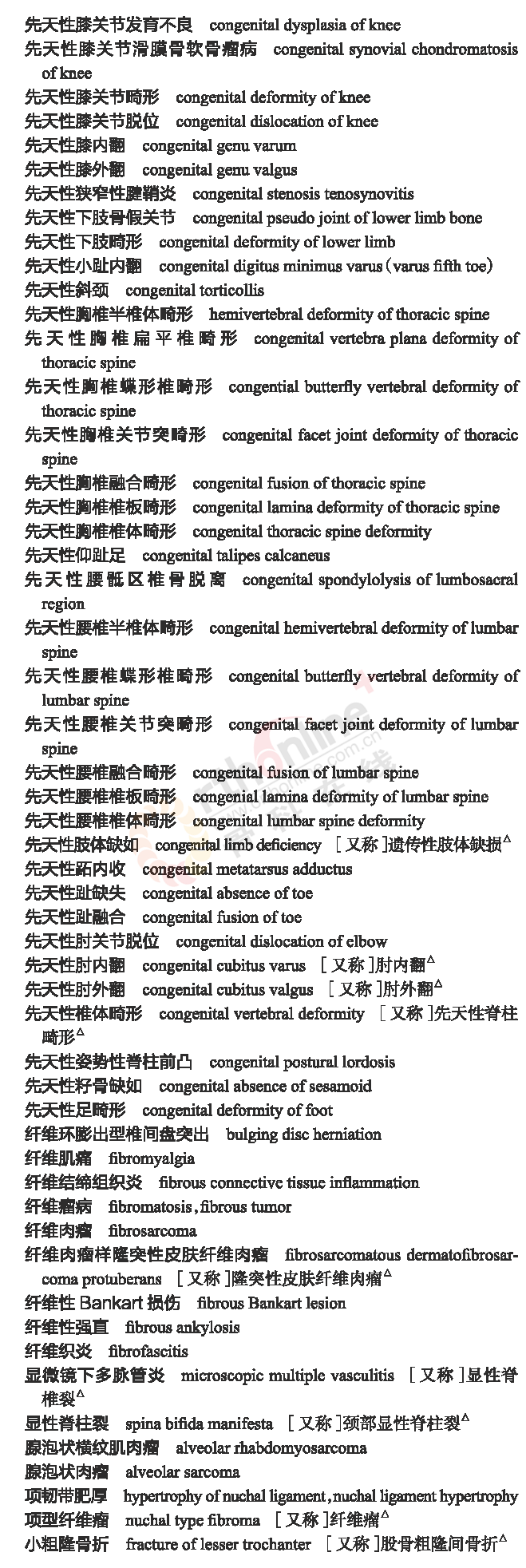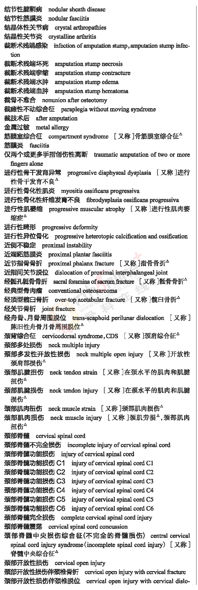 国家卫健委发布常用临床医学名词(2019年版骨科篇)