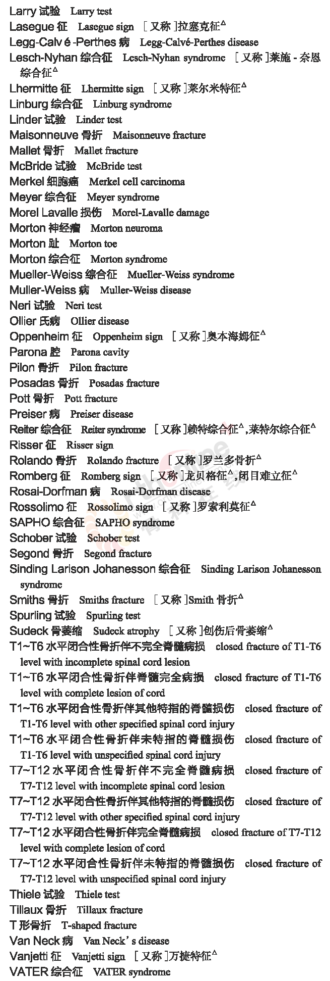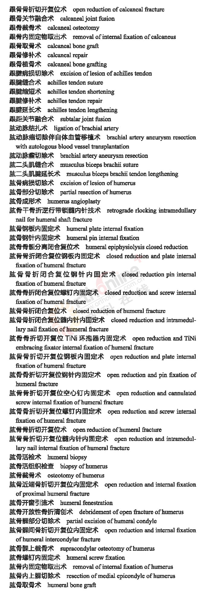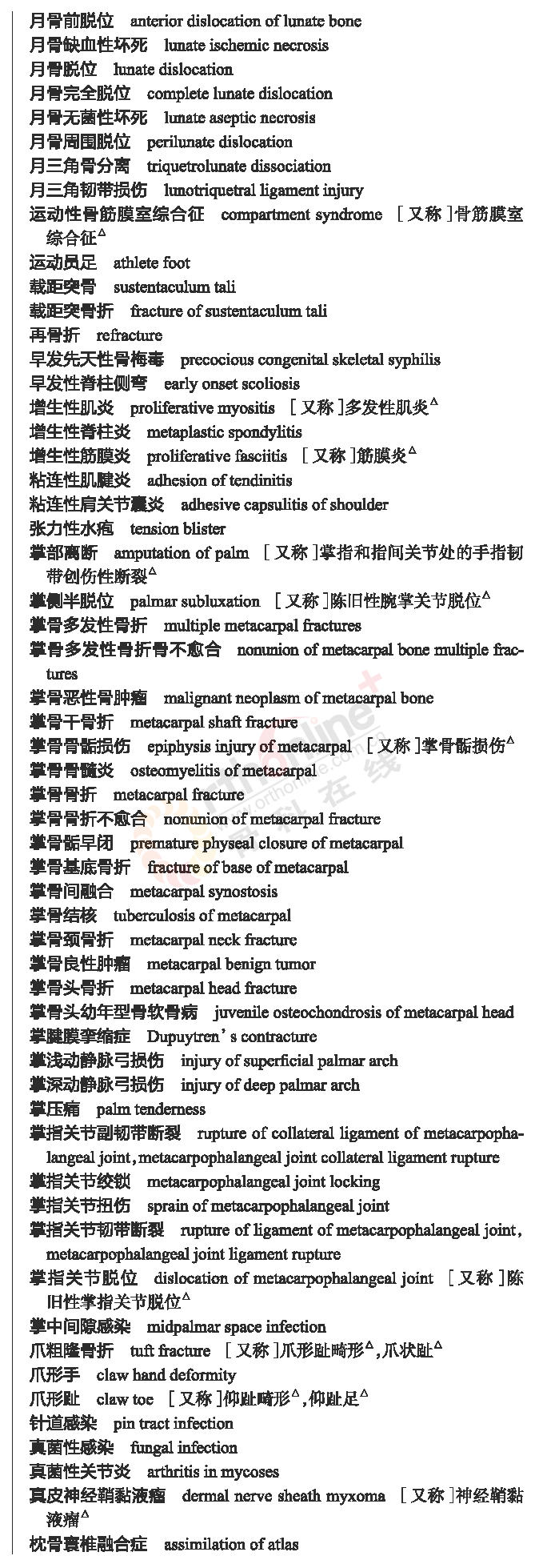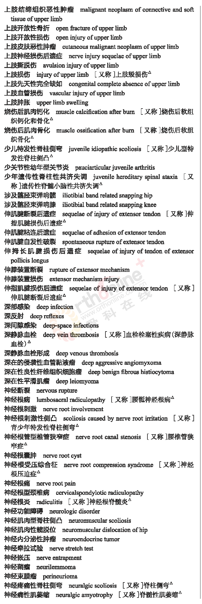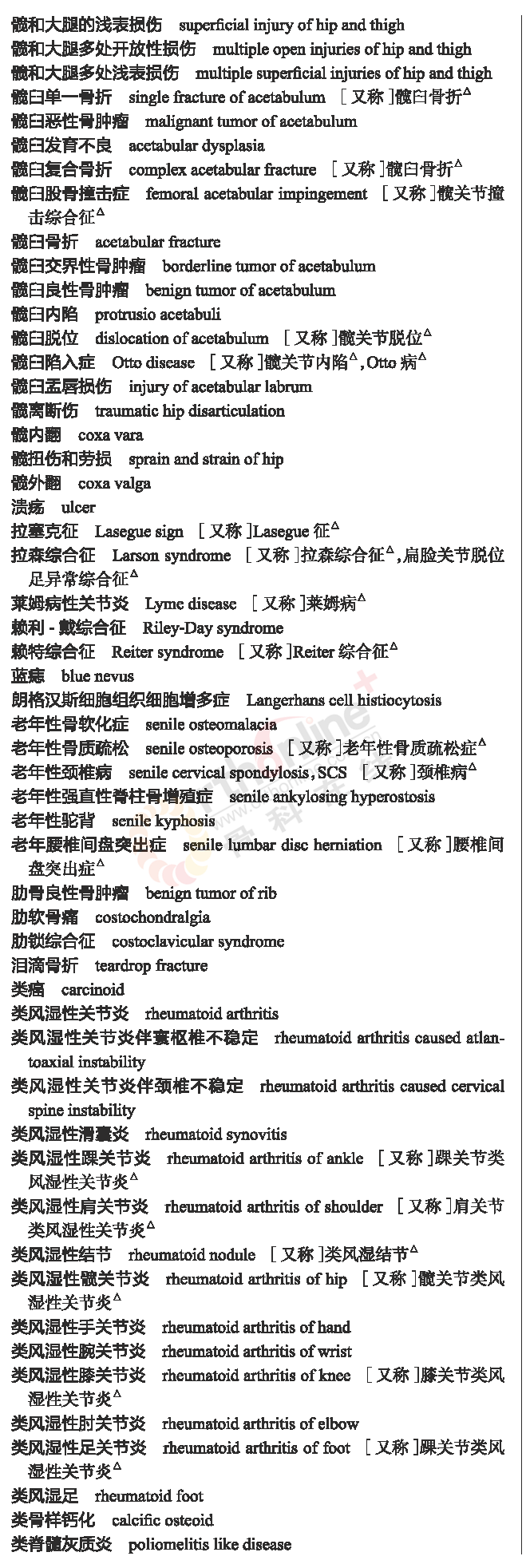 国家卫健委发布常用临床医学名词(2019年版骨科篇)