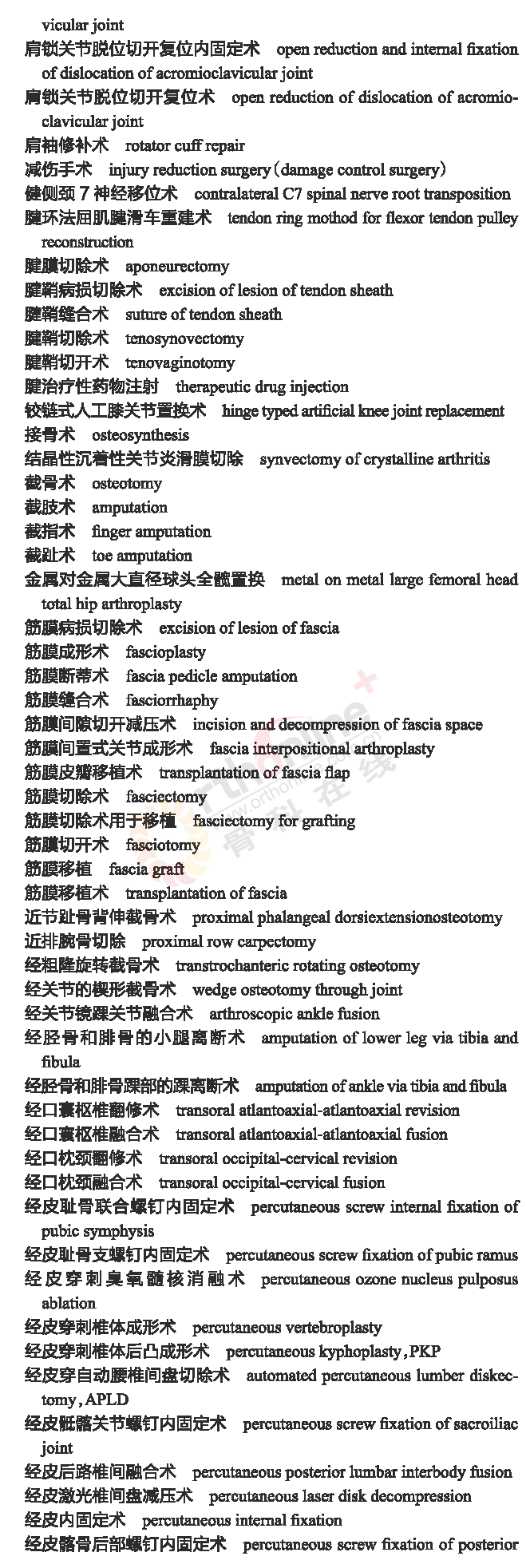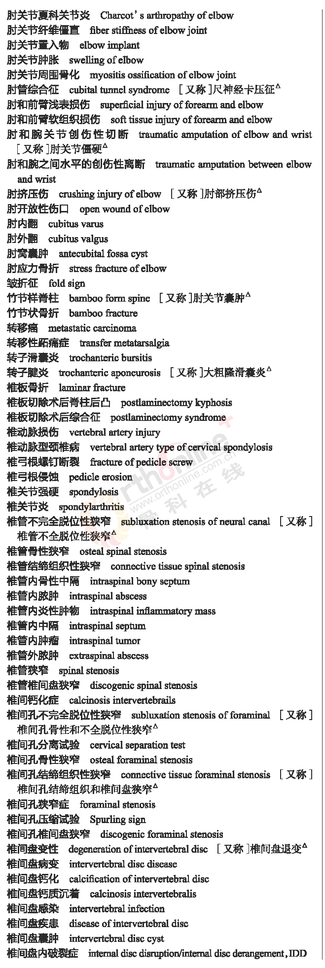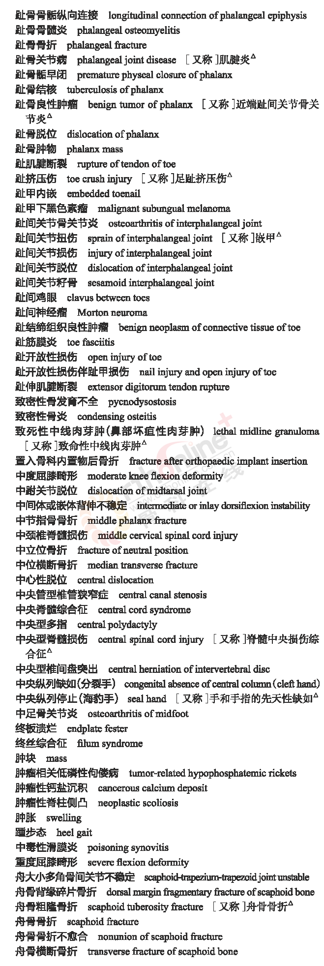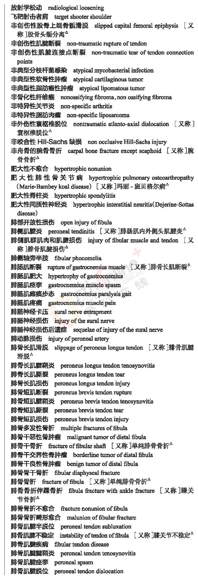 国家卫健委发布常用临床医学名词(2019年版骨科篇)