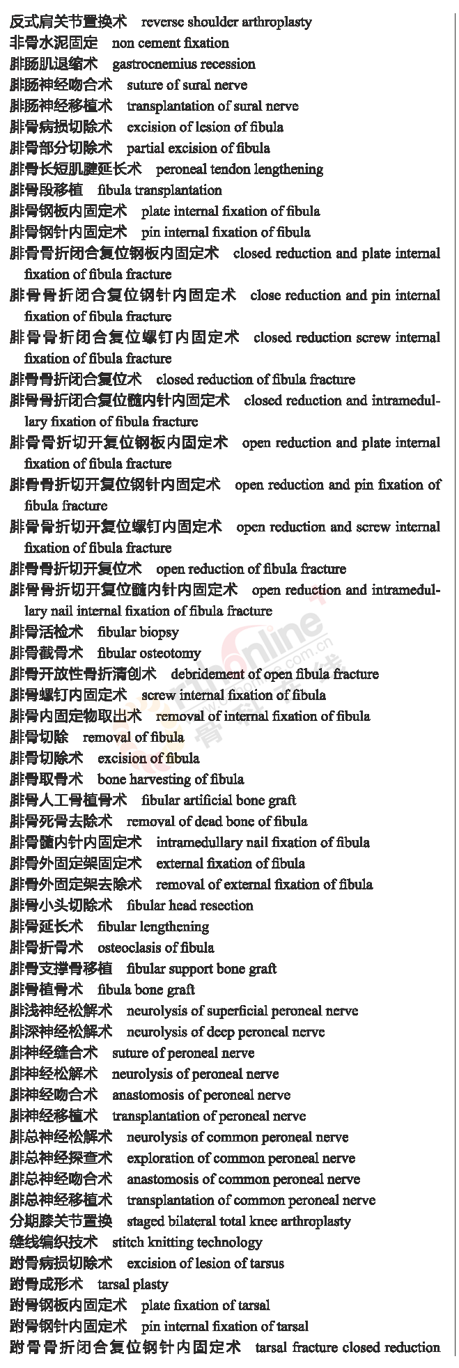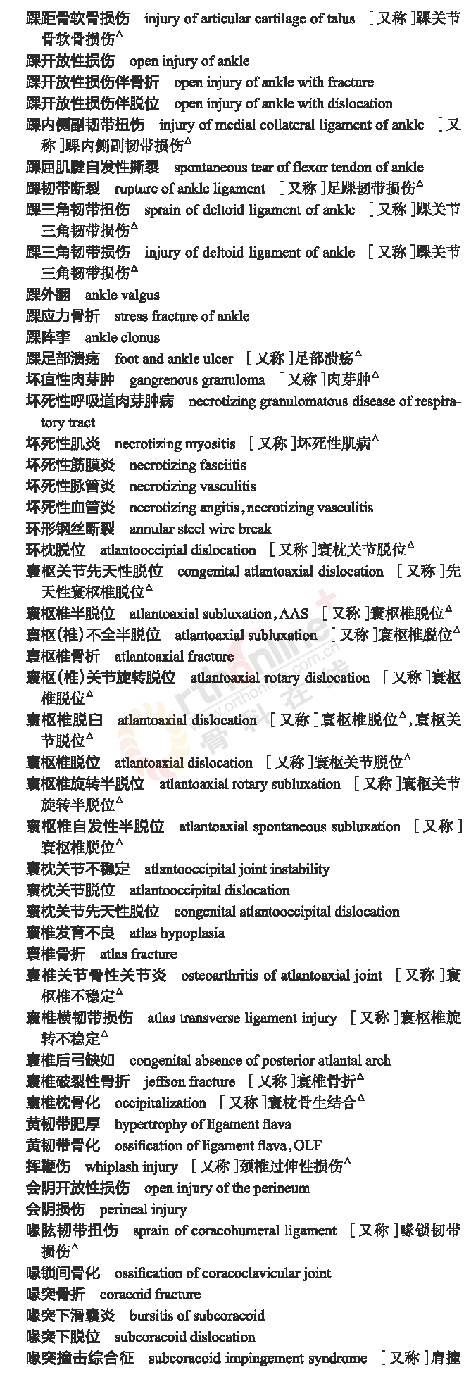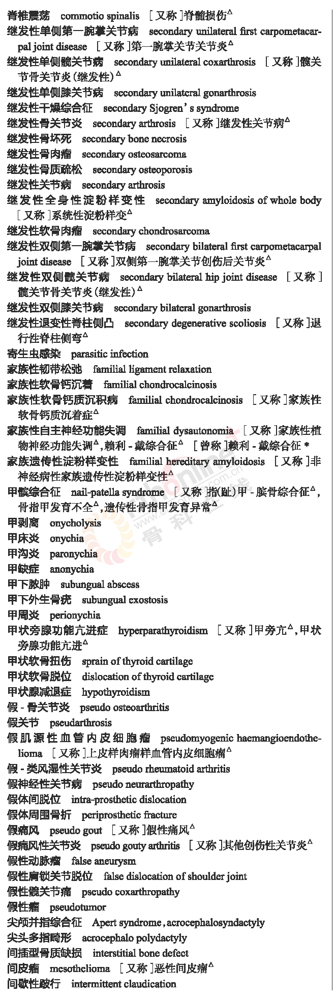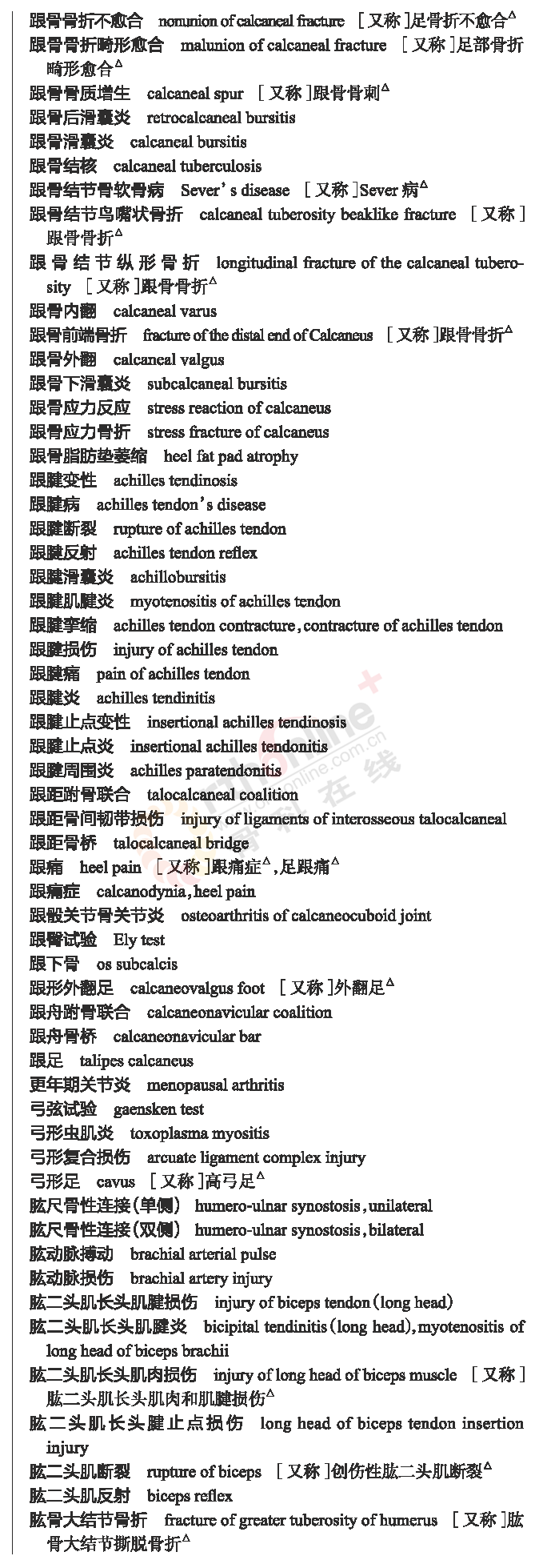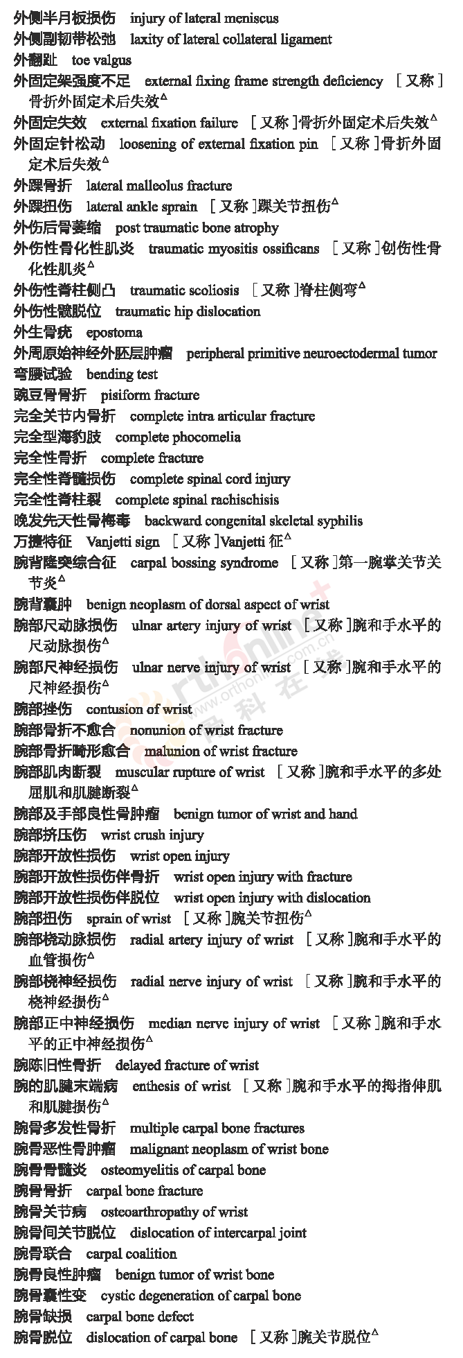 国家卫健委发布常用临床医学名词(2019年版骨科篇)