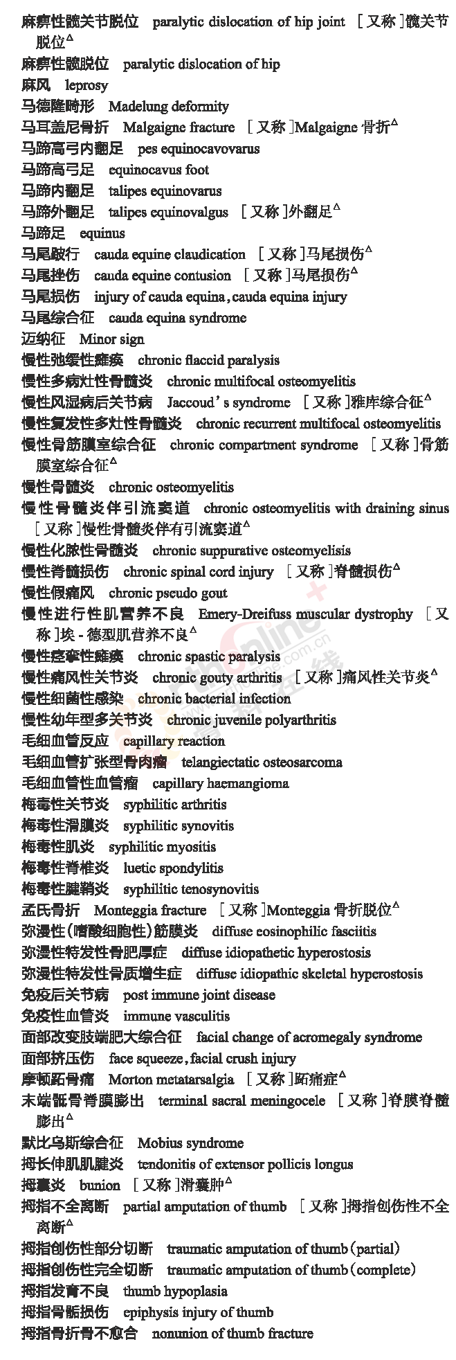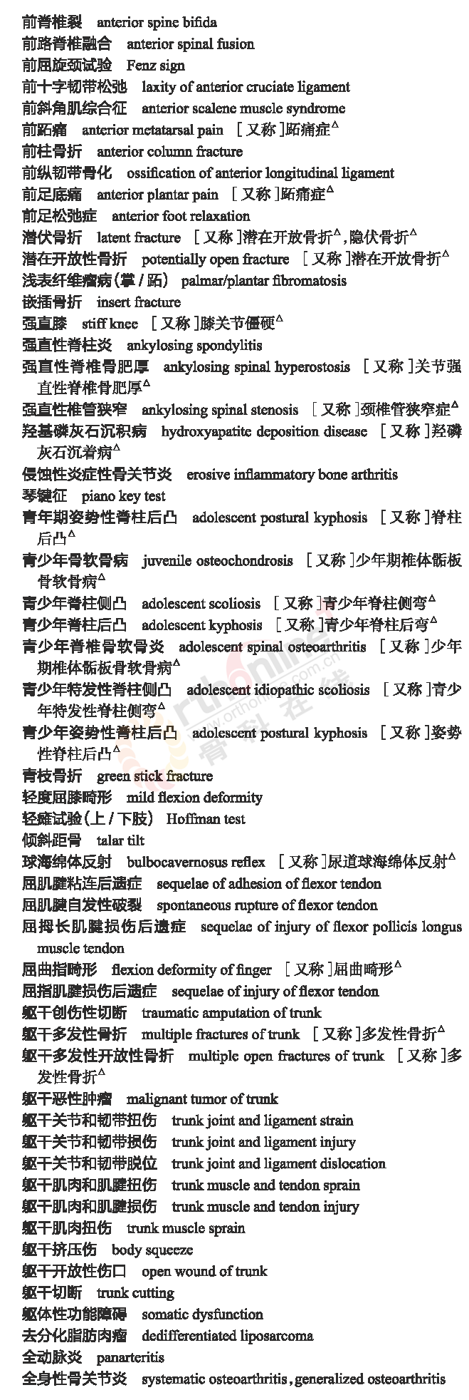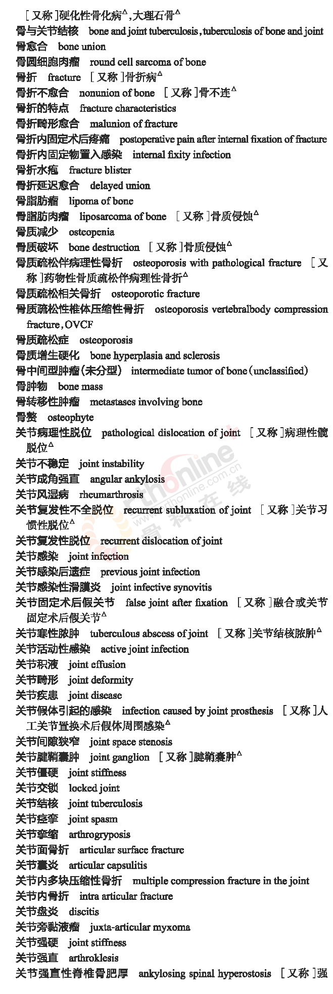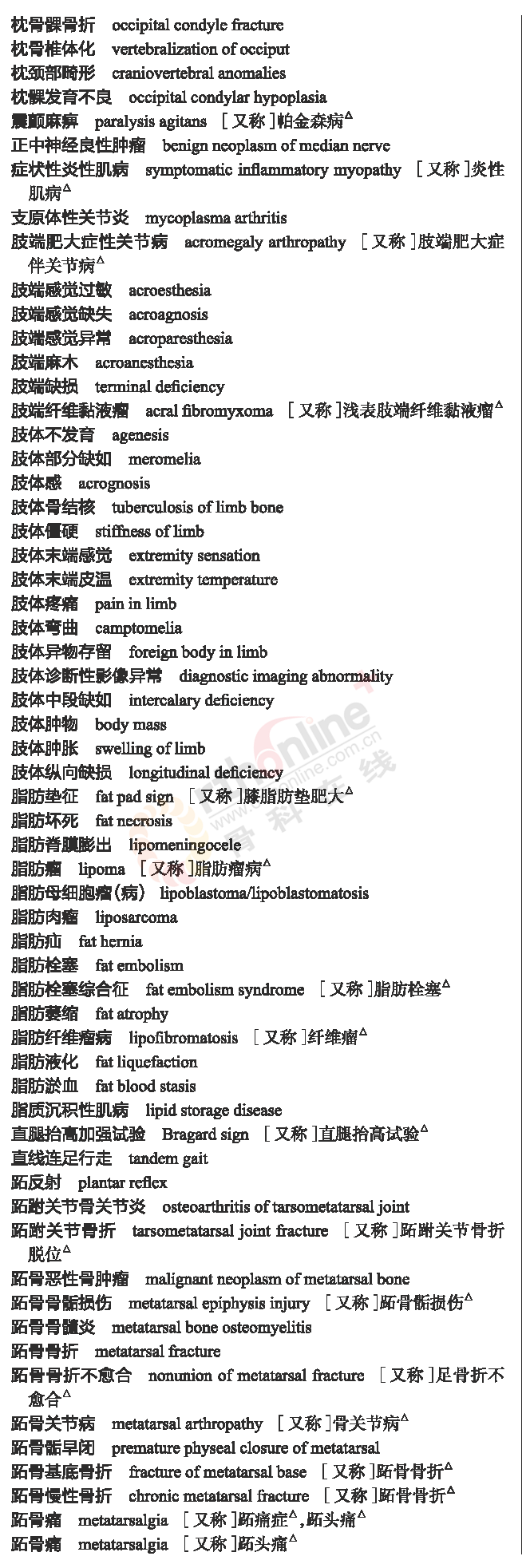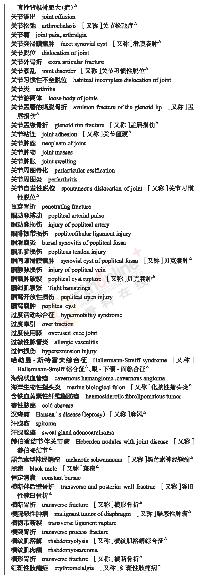 国家卫健委发布常用临床医学名词(2019年版骨科篇)