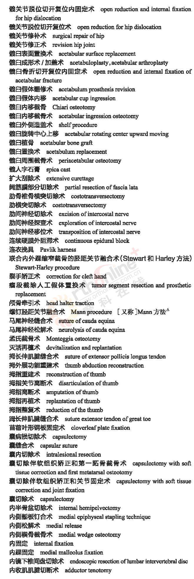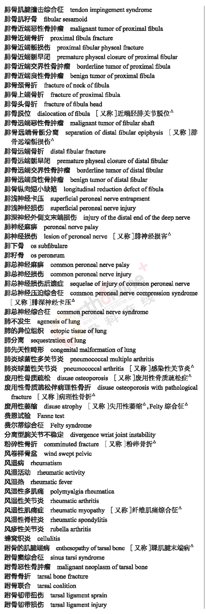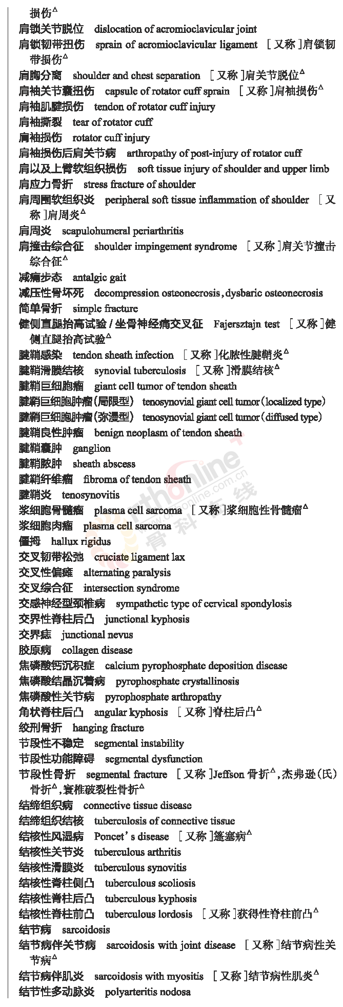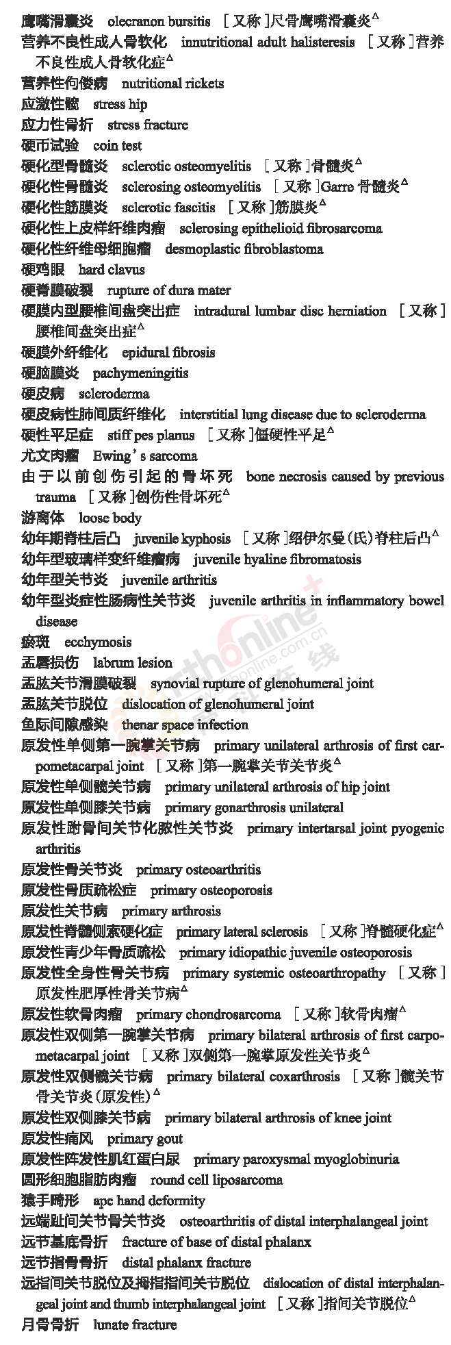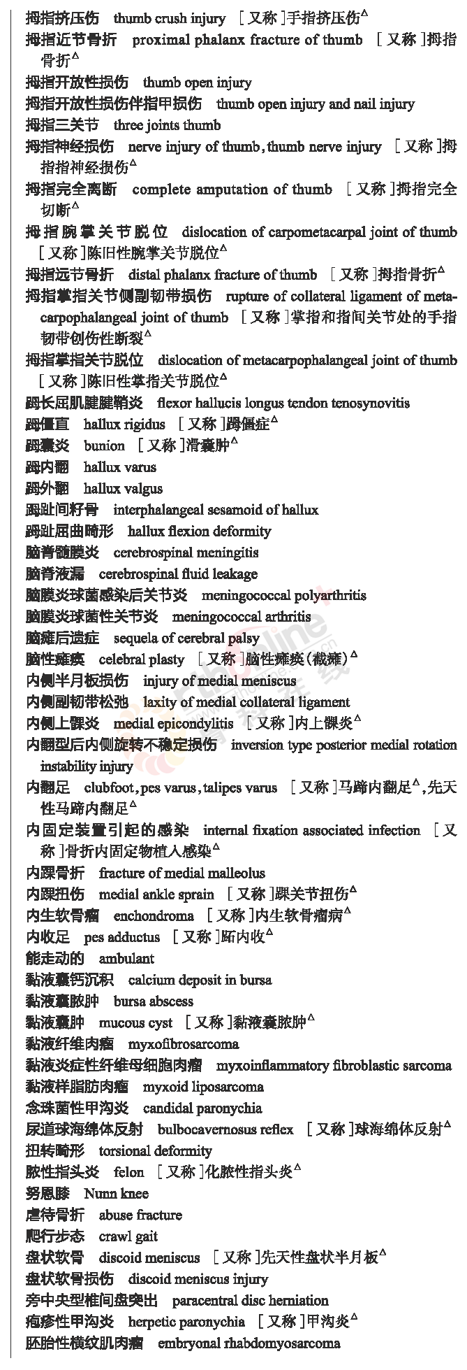 国家卫健委发布常用临床医学名词(2019年版骨科篇)