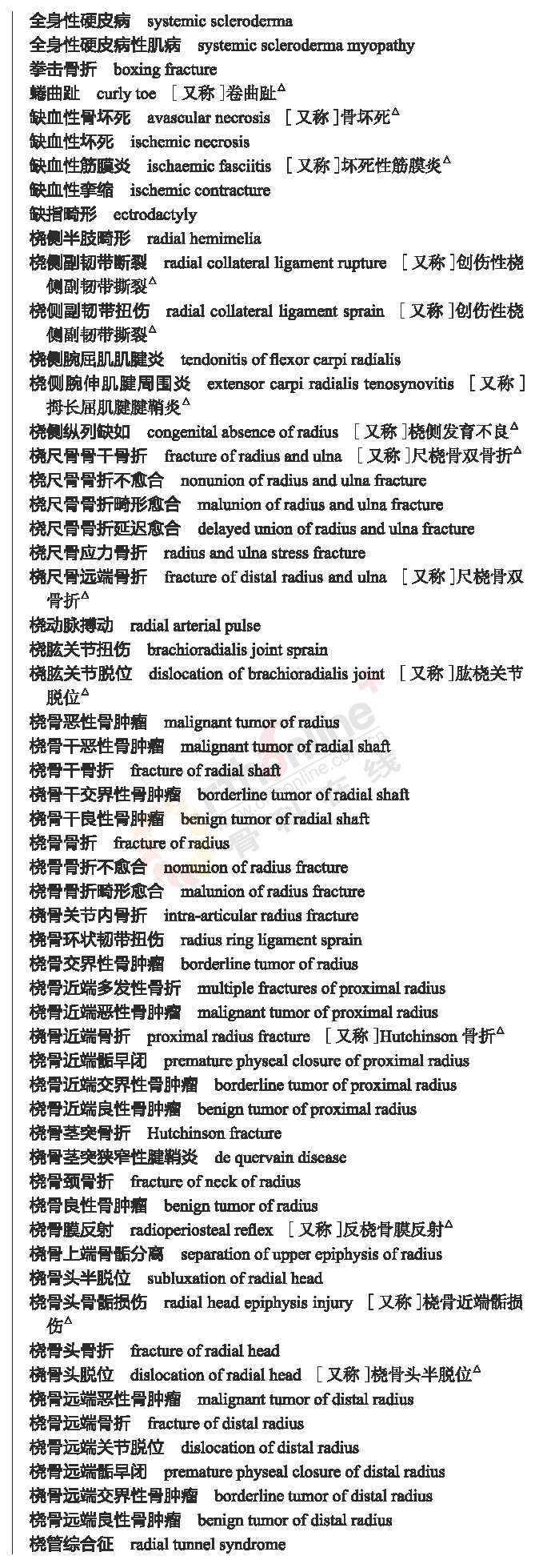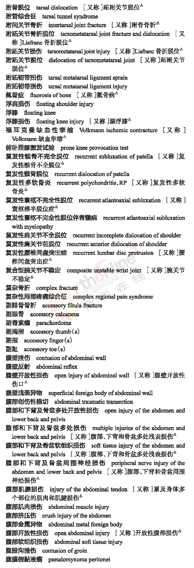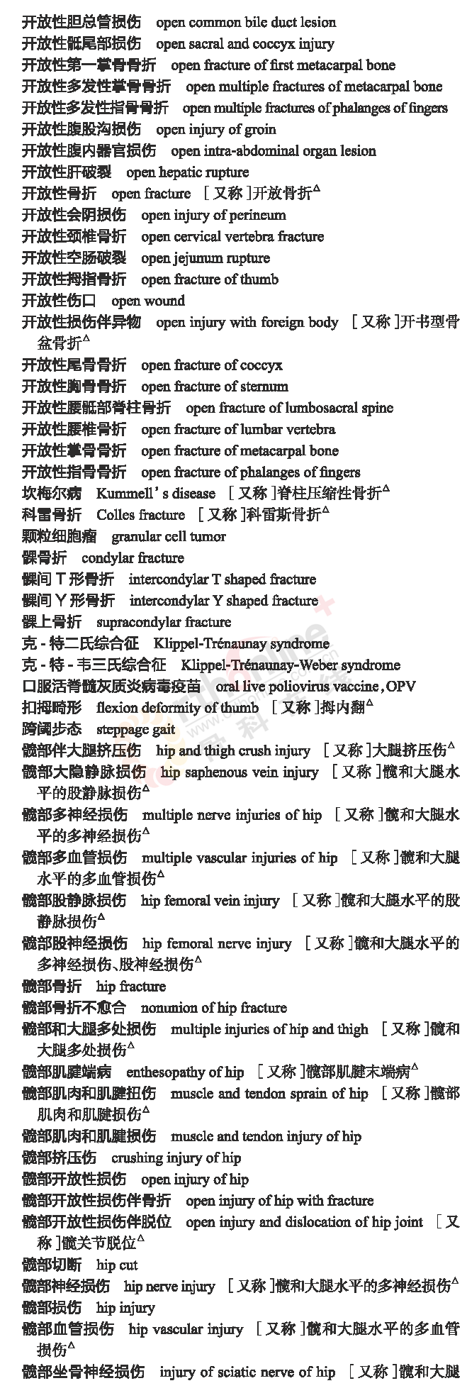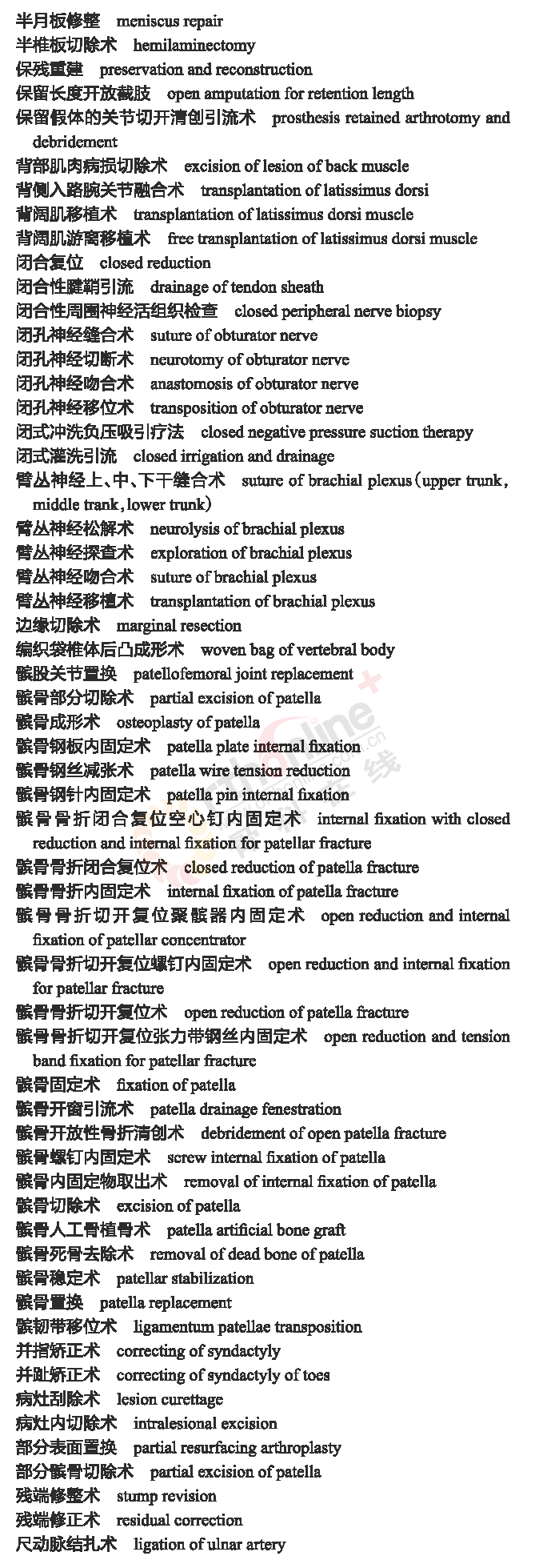 国家卫健委发布常用临床医学名词(2019年版骨科篇)