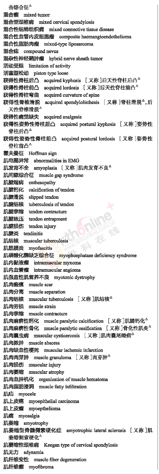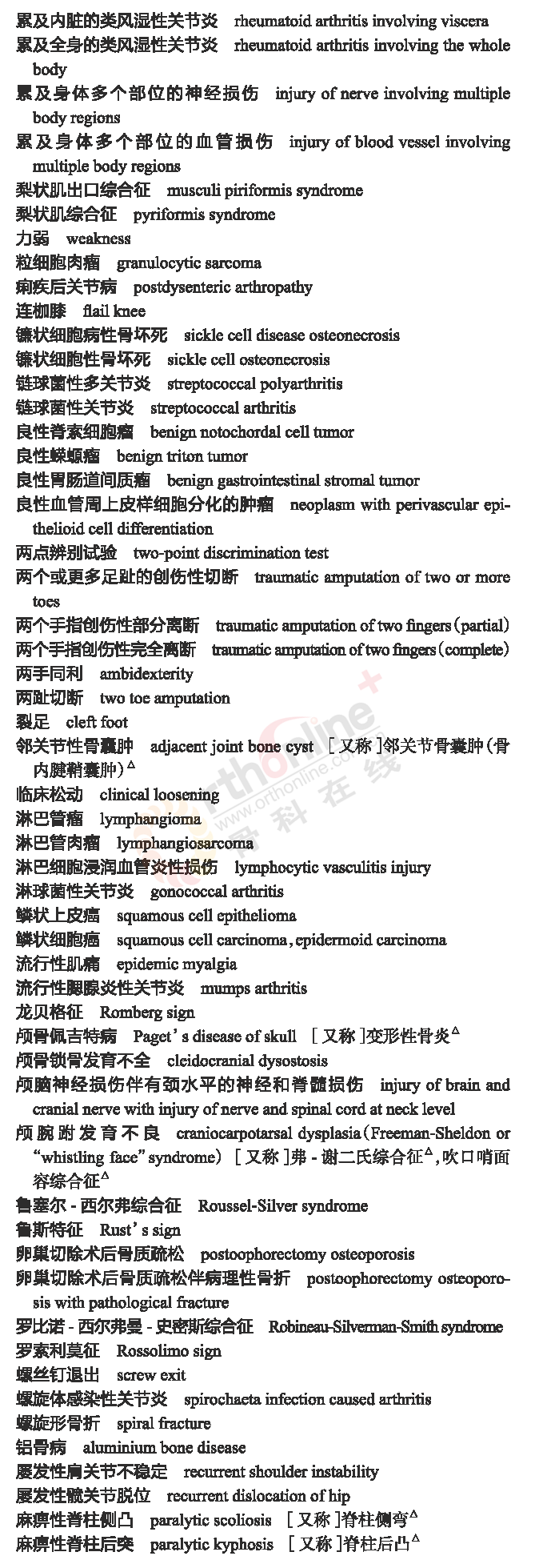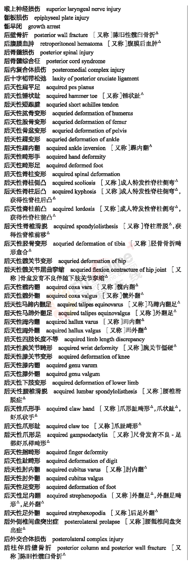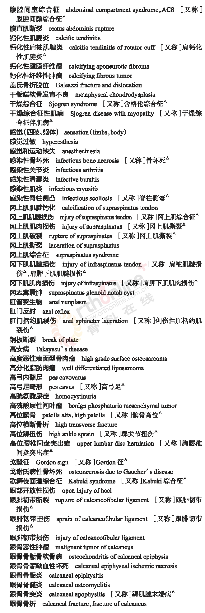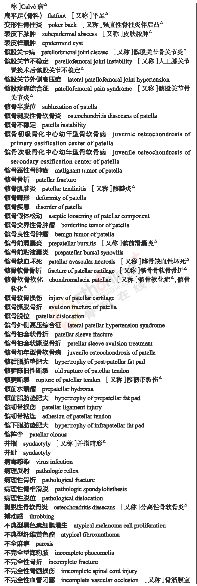 国家卫健委发布常用临床医学名词(2019年版骨科篇)