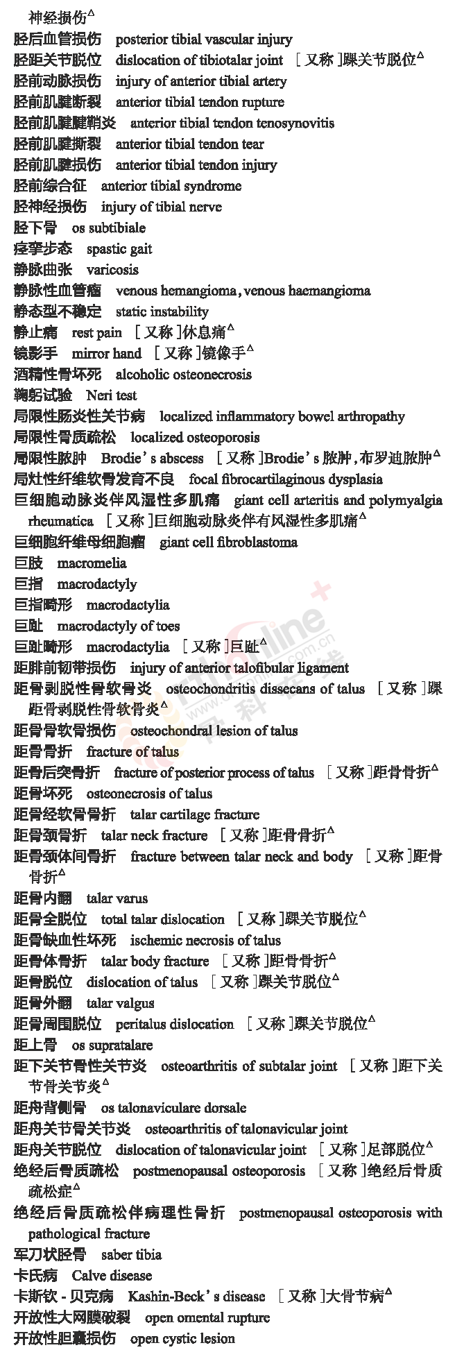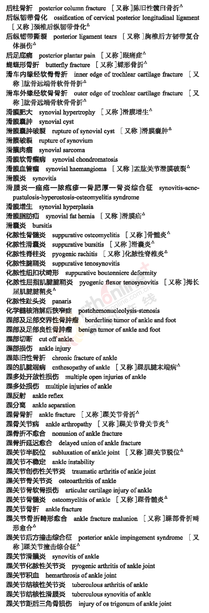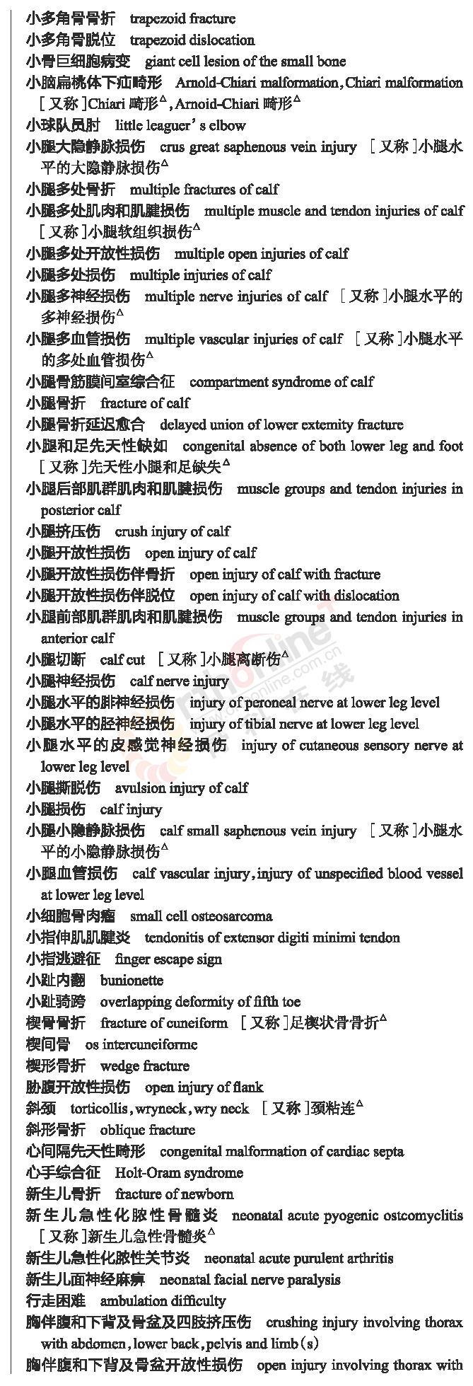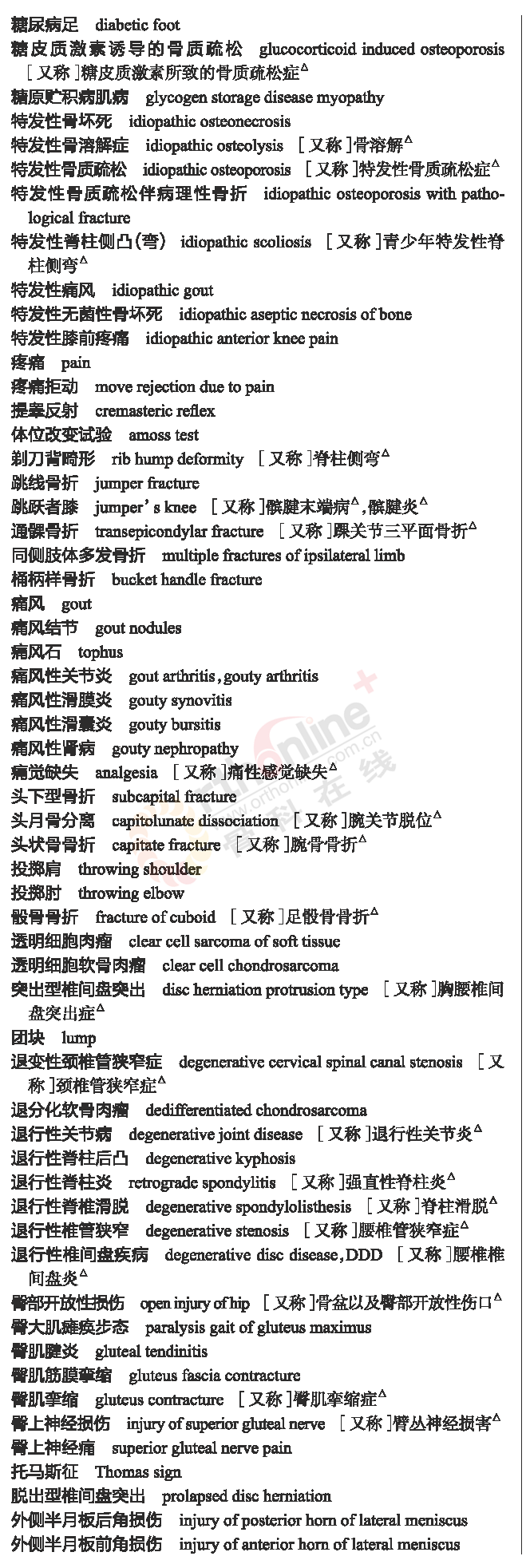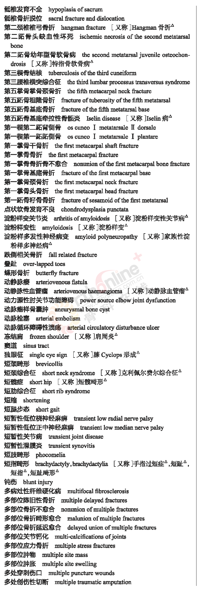 国家卫健委发布常用临床医学名词(2019年版骨科篇)