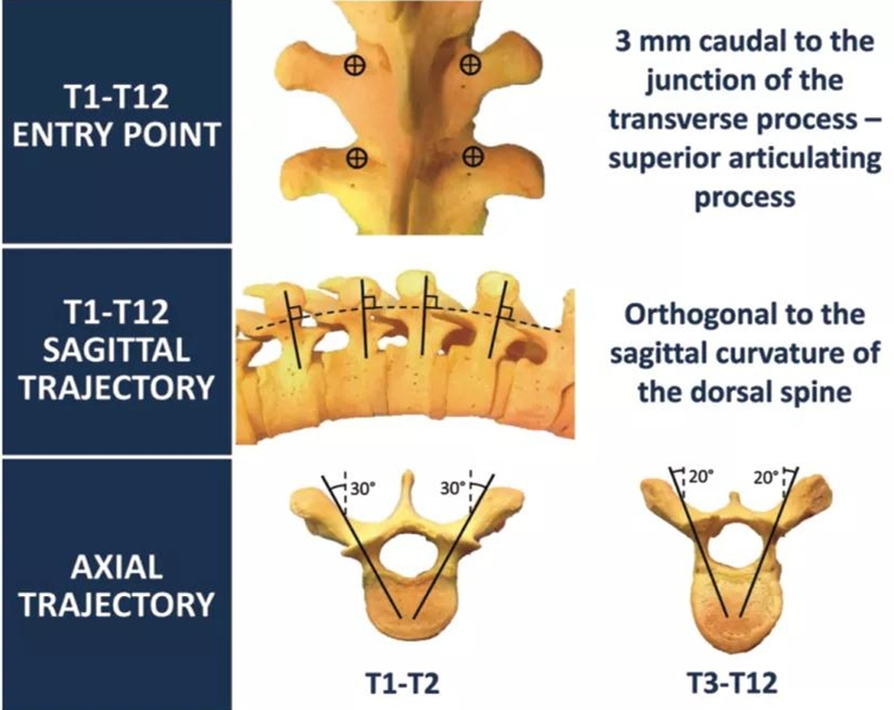 12节胸椎的椎弓根钉进针点和钉道方向,几乎节节不同。初学者记忆起来颇费事 胸椎椎弓根钉进针点选择 (点蓝字查看,内有经典的lenke置钉法,勤加记忆),现有全胸椎通用的万能进针点,方便记忆。