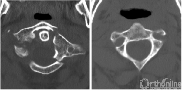In both cases, contralateral fixation was not associated with any complications, and provided excellent stabilization of the C1–C2 segment.