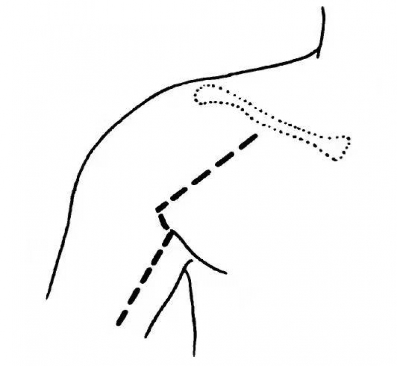 桡神经在腋窝处穿出到后面时,便发出肱三头肌长头的肌支,少数人发出外侧头和内侧头的肌支,但大多数人的外侧头和内侧头的肌支发自神经穿入桡神经沟前。故肱骨干骨折引起桡神经损伤时,肱三头肌功能不会受损害。若肱三头肌肌力为0级时,桡神经损伤平面应在腋窝内,除非是神经主干与肌支同时在穿出腋窝时受伤。近段的桡神经伤主要是肱骨干骨折引起,这与桡神经在肱骨桡神经沟经过时接近肱骨易受伤有关。