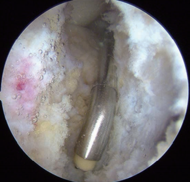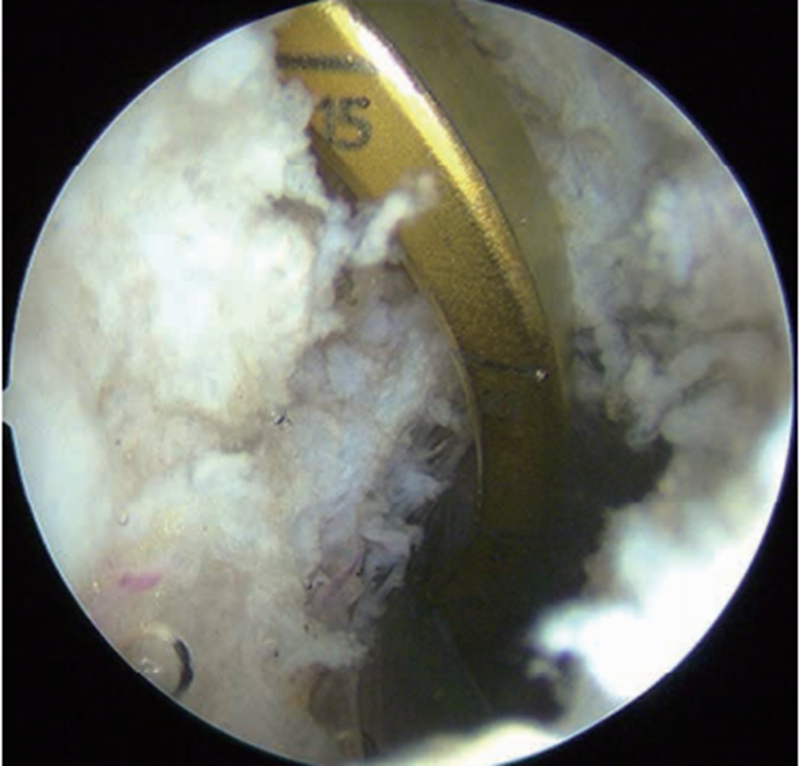 适当清理PCL残端周围滑膜、脂肪和后纵隔,显露PCL胫骨止点及其下方至少20mm深度