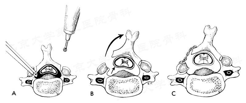 其基本原理是通过椎板截骨的方法,使椎管的后壁向后向外开放,在保留椎板的同时,扩大骨性椎管的面积,从而使得椎管有效空间扩大,脊髓获得减压。