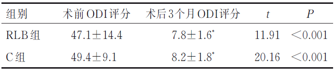 表5 两组患者手术前后ODI评分