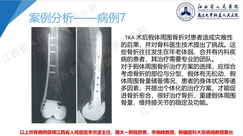 最后,小结一下,任何一种膝关节翻修手术,都要遵循复杂问题简单化处理的方案。术者采用最熟悉的术式,最简单化的操作,对病人的功能最小干扰,获益最大的方法,我们称之为简单化方案。术前的困难想象要充足,要准备备选方案,做翻修手术可能要有显微外科的准备、创伤外科的基础,任何翻修手术都是复查手术,需要与病人交代好清楚,降低预期,选择适合患者的最佳翻修手术方案。