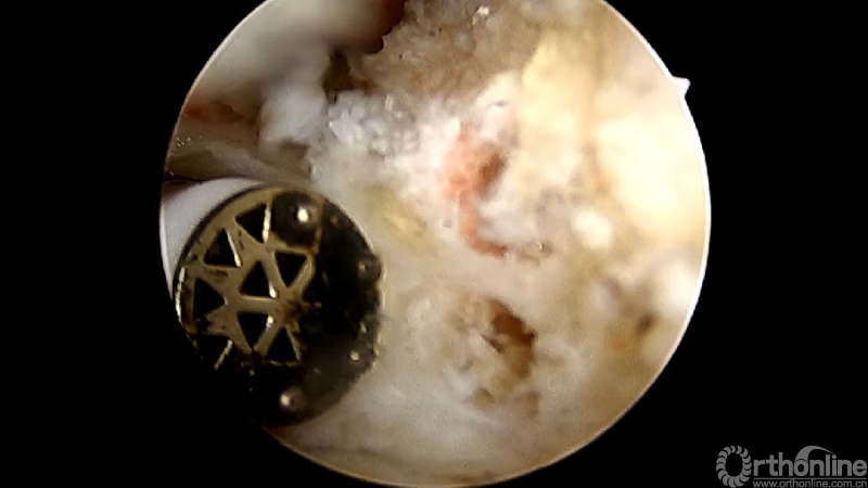 我们选用mark磨钻在下关节突上钻孔固定进行透视来确定关节突内缘磨除的外界。