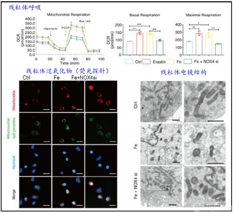 F、NOX4 显著影响线粒体呼吸水平,敲降后显著恢复