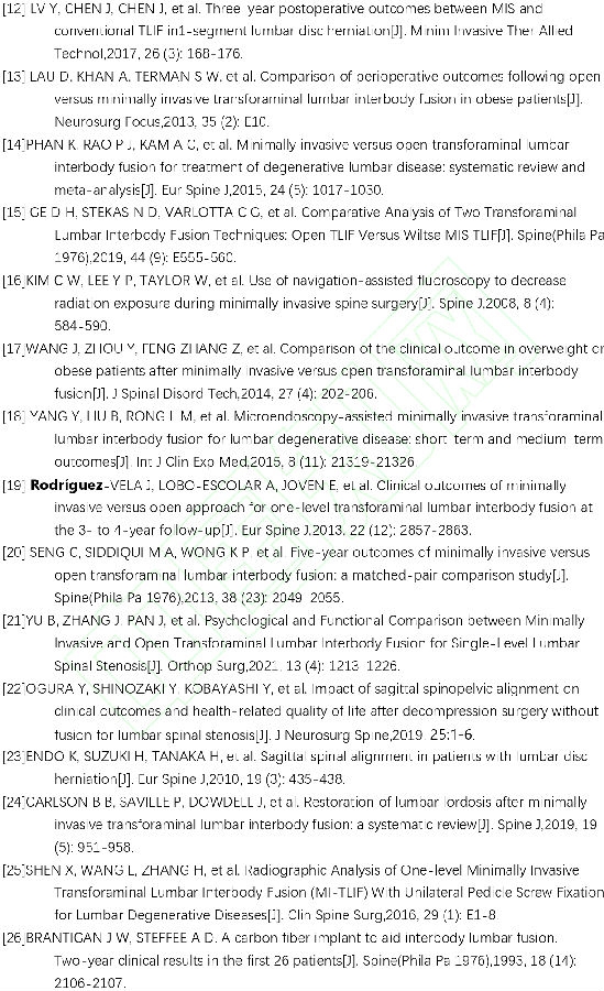 同时,MIS-TLIF在降低手术并发症发生率方面也具有一定优势。随着手术器械和技术的发展进步,MIS-TLIF存在的手术视野受限、学习曲线陡峭、射线暴露多等问题有望逐步得到改善。